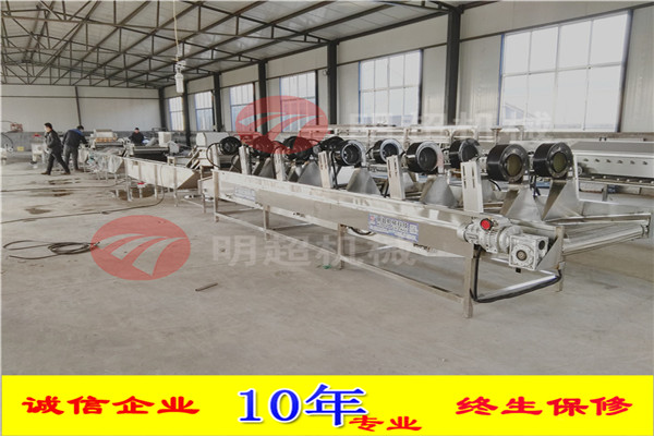 采用全自動控制,通過多次翻轉將桑葉菜表面的水滴去掉一部分,風溫為常溫風,大風量風機,根據客戶吹干水分的的要求,可采用風刀式形成進行除水,物料在網帶上往前輸送,通過風機除去表面的水滴,達到客戶要求的效果。采用鏈板式網帶 尺寸:6000*1000*1500 |