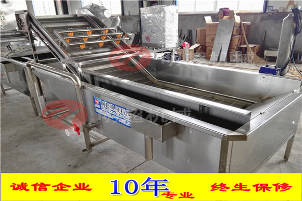 開始將沙果投入到設(shè)備里面浸泡,浸泡1小時,然后通過網(wǎng)帶輸送到殺青機里面,形成流水線。整機采用sus304不銹鋼制作,電機和鼓風(fēng)機除外。網(wǎng)帶速度可調(diào),水可循環(huán)利用