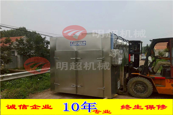 沙果干瀝水后,需要人工將沙果干放入烤盤后,再放入烘車上面,然后關(guān)閉烘干房門,第壹次烘干需要調(diào)試控制器,將烘干溫度和烘干時間,排濕時間調(diào)試好后,以后再烘干,就不需要調(diào)試了,采用192盤烘干房,烤盤尺寸:640*460*45mm,設(shè)備尺寸:4500*2400*2700mm,功率:72kw【實際用電量24kw】加熱方式為電加熱,采用數(shù)控數(shù)顯,風(fēng)機采用全鋁,保溫采用硅酸鋁,厚度為8cm