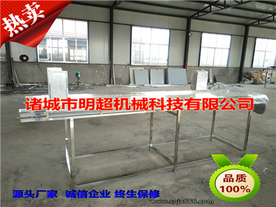 沙果片進入到冷卻機后,采用自然水進行冷卻,保持顏色不變,冷卻后,通過輸送帶輸送出來,尺寸:3000*800*1150mm,功率:0.75kw,電源:380v/50HZ