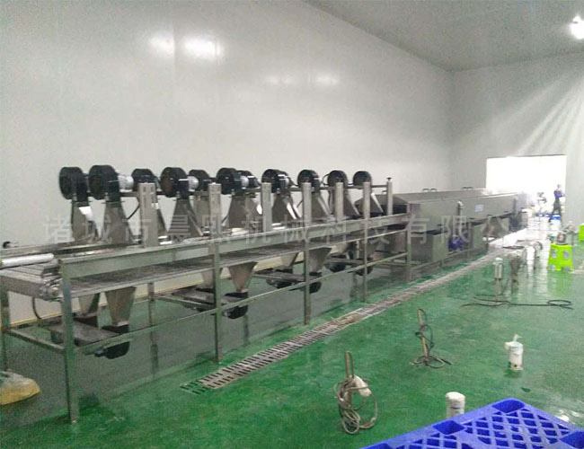 采用汽泡水浴清洗.本清洗機采用汽泡清洗,適用于葉類蔬菜的清洗,可根據產品的質量要求來定做。設備除電機、軸承等標準件外均采用不銹鋼SUS304/2B材料制作,完全符合出口食品衛生要求。設備中設有氣泡發生裝置,使物料呈翻滾狀態,去除產品表面農殘功效,同時可加入適量的藥劑,進行消毒固色,漂浮物可以從溢流槽溢出,沉淀物從排污口排出,以達到清洗的目的。氣泡清洗機是針對外形要求高的物料設計,適用于:蔬菜、水果、水產品、中草藥等顆粒狀、葉狀、根莖類產品清洗、浸泡。